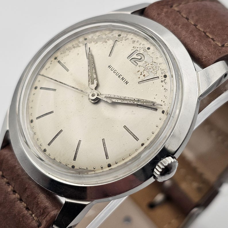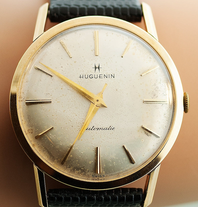 Cette montre des années 1970 est le modèle la plus populaire de notre collection. Elle s'est vendue à plusieurs milliers d'exemplaires, en raison de la popularité croissante de Huguenin durant cette période.